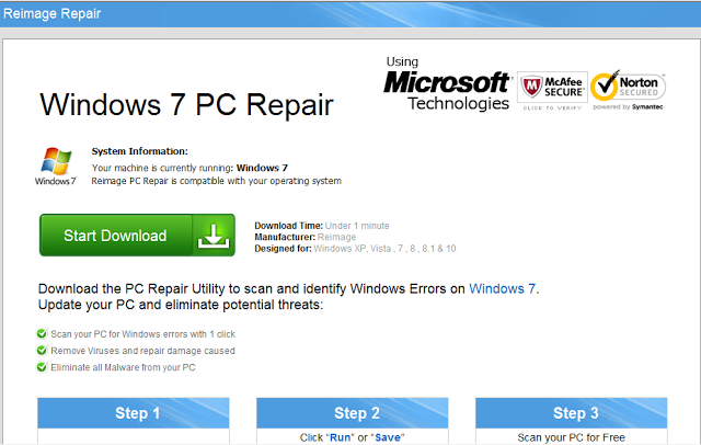 The downloaded file flashsetup.exe is a variant of Potentially Unwanted Application Win32.InstallCore. During the installation of the Adobe Flash Player, several other websites offering other unwanted scareware applications are displayed. One such case where the spyware installer prompts the user to download and install Windows 7 PC Repair tool is shown below: