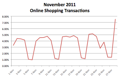 Last year I did a post on the transactions that we saw related to online shopping on Cyber Monday - as I indicated in the past, yes there is a spike. And looking at the transactions this year, again we notice a spike: