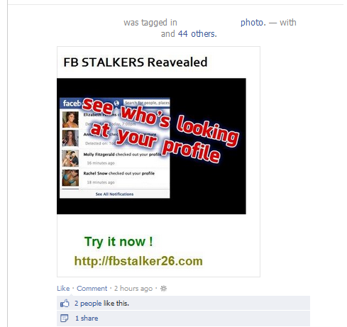 The link from that photo will take you immediately to a new page where you are meant to log in again with your Facebook credentials.  A quick glance at the address bar will show you that you are not in Kansas anymore.  Don't do it!  Don't enter that information!