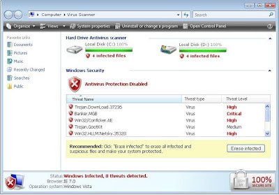 We continue to see numerous infected sites, which are redirecting users to fake security software campaigns. The pages display animated fake security warnings to users in order to scare them and convince them to download and install a binary, which is generally packaged as fake antivirus software. The victim will be infected with a downloader Trojan that will then download additional malware. Below are a few screenshots of animations typically used in the attacks: