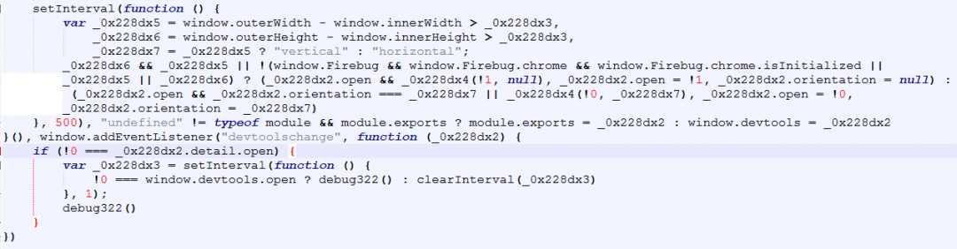 Figure 7: The obfuscated JavaScript to detect a browser console