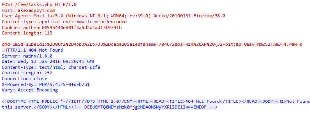 C&C Server will not return required data if HTTP header fields are different.  The server sends a fake 404 response code and html data stating that page is not found but the C&C commands will be hidden in the response HTML comment tag as seen below: