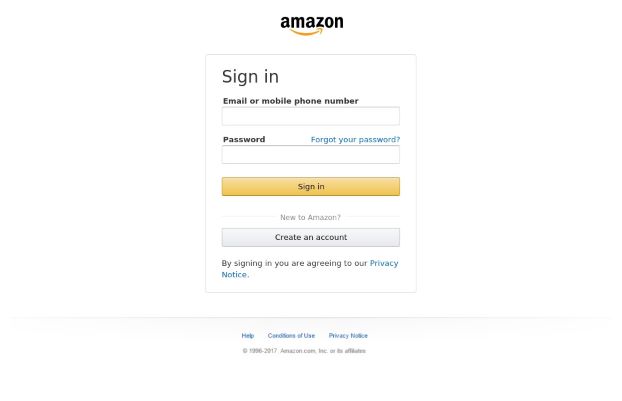 Figure 6: Faked Amazon login screen