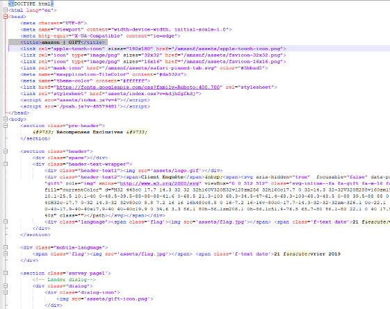 Figure 4a: HTML of the page shows the attempt to pose as an Amazon Gift Card