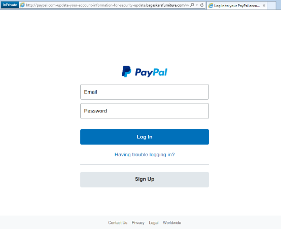 Figure 9: Faked PayPal login screen