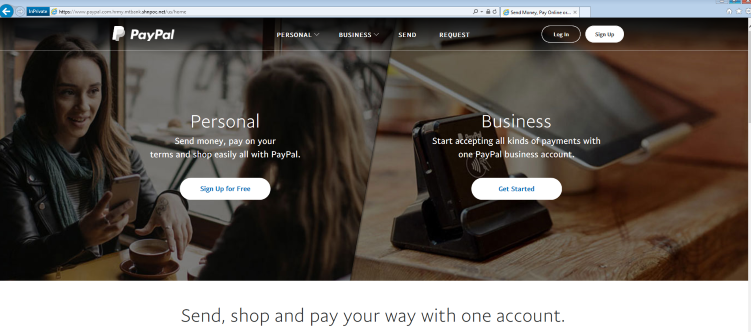 The example below appears to be a PayPal site that enables you to sign up for a personal or business account, or even recover your password. But any personal and financial information you enter will be captured by the scammers.