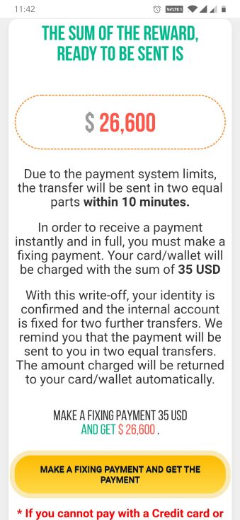 Figure 14: Scam message saying if you pay $35, you will receive $26,600