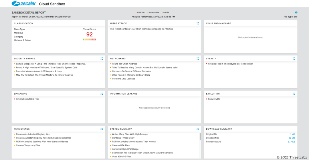 In addition to sandbox detections, Zscaler’s multilayered cloud security platform detects indicators related to Trigona at various levels with the following threat names:
