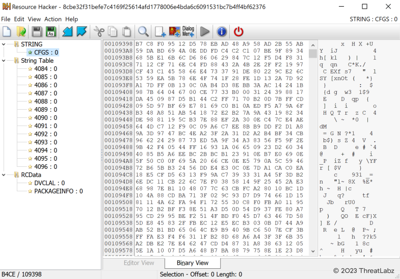 After parsing the command-line parameters, Trigona loads an embedded configuration that is used to initialize an internal data structure. The ransomware stores this configuration in the binary’s resource section as a string resource named CFGS as shown in Figure 1.