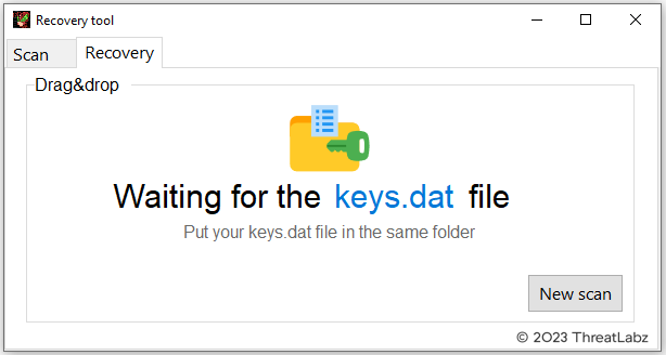 Figure 5. Trigona ransomware decryption menu requiring a keys.dat file