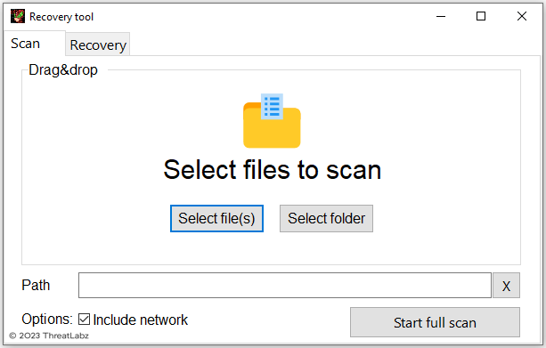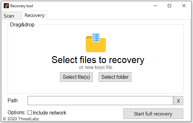 Figure 6. Trigona ransomware decryption tool feature to scan for encrypted files