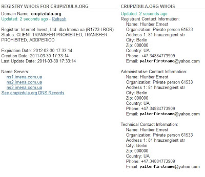 The website sets a cookie and redirects to Google. This cookie may be used by the attacker to track previous victims in order to ensure that the payload is only delivered one time. This is another common technique to keep the attack under the radar. This site was registered on 30th March 2011 in Ukraine. Here is the whois lookup,