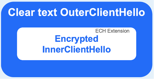 ECH functions as an extension within the client hello message, preserving the clear text outer client hello while concealing the actual client hello with server name identification inside a TLS extension—encrypted via hybrid public key encryption.