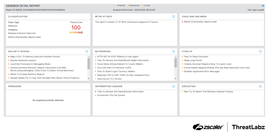 Figure 4: Zscaler Cloud Sandbox report for HijackLoader.