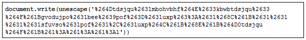 • the decoding loop uses some unusual pieces of code: .toString(16); unescape(unescape(, etc.