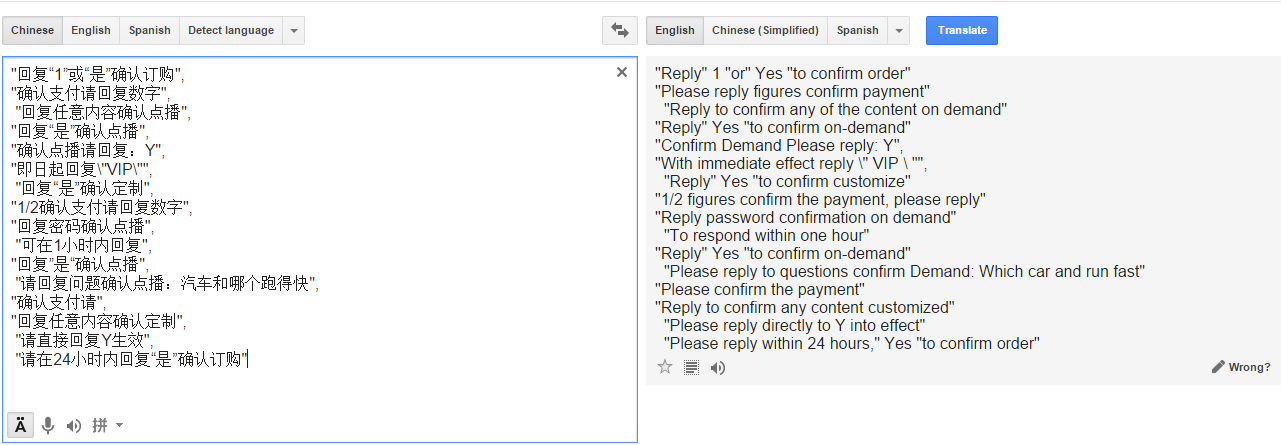 The intention of the malware author is clear from these message strings. The app generates fraudulent transactions from an infected device by purchasing on-demand videos and premium SMS services controlled by the attacker. SMS messages are generated by the app to initiate a purchase. The app then monitors incoming SMS messages to identify the purchase validation message, which must be accurately responded to in order to complete the transaction. When the validation message has been intercepted, it is parsed and matched against the hardcoded strings in the image above, to determine and submit the appropriate response. Once this occurs, the transaction is complete and the victim will be charged by their mobile provider.