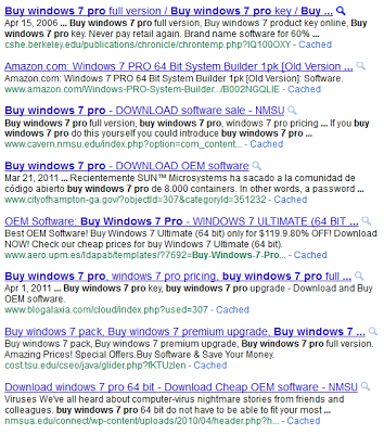 A Google search for "buy windows 7 pro", for example, still shows primarily hijacked sites as the top of the results. It is very disappointing that Google has not cleaned up their search results after several months...and Bing doesn't do a better job on this one either.