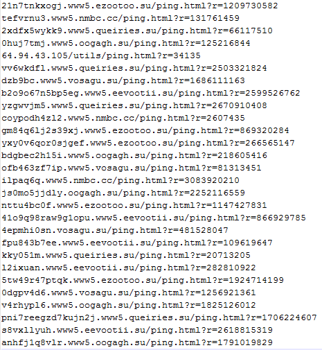 The pattern ("ping.html?r=") is commonly known to be used by past versions of