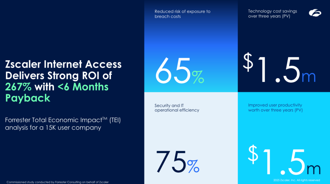 Download the Total Economic Impact™ Of Zscaler Internet Access to understand in detail the cost savings and business benefits enabled by ZIA. This is a Forrester Total Economic Impact study commissioned by Zscaler in April 2025.