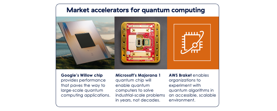 Hyperscalers are making great strides in quantum computing due to their extensive infrastructure, global reach, and expertise in advanced computing. Some examples are shown below: