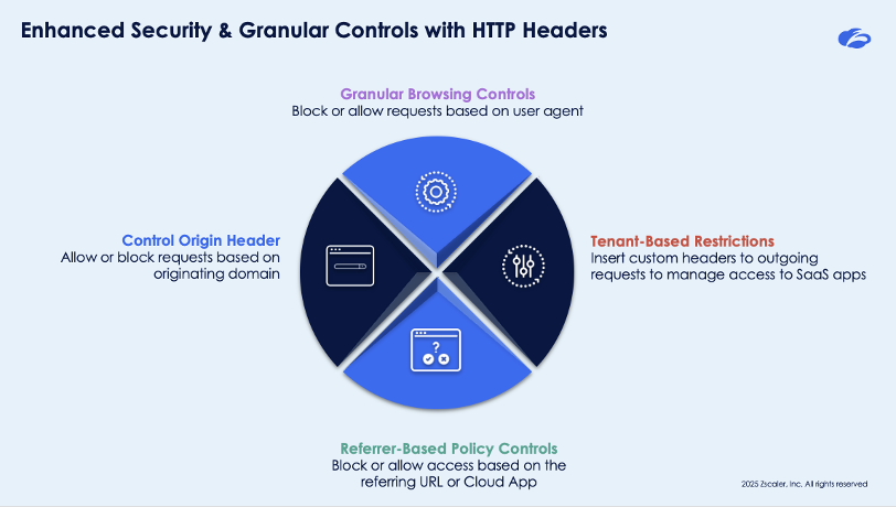 ZIA has long offered deep access controls — bandwidth shaping, firewall enforcement, DNS/URL filtering — all amplified by SSL inspection at scale. But with our latest update, we’re handing you surgical control over HTTP headers — giving security and IT teams unprecedented policy precision.
