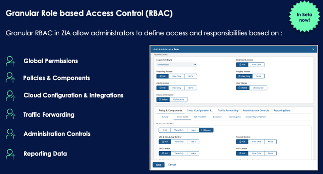 With the latest updates to RBAC in ZIA, you can now define not just who gets access—but what they can see and do—based on their function, location, or organizational role.