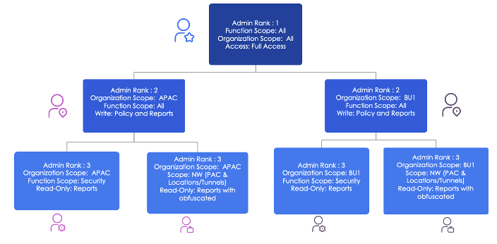 Even these delegated admins can grant tiered permissions within their scope—enabling operational scale without losing oversight.