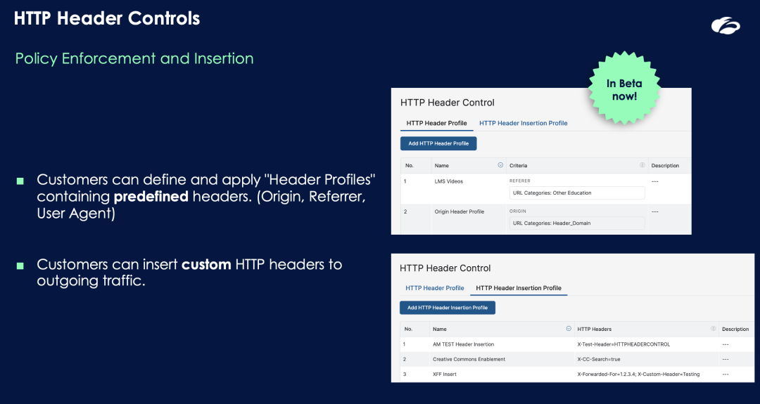 All of this is built on a simple construct: define HTTP header profiles (User-Agent, Origin, Referrer), reuse them across policies, and apply controls where it matters most. Early beta customers are already seeing significant gains in policy efficiency and control.