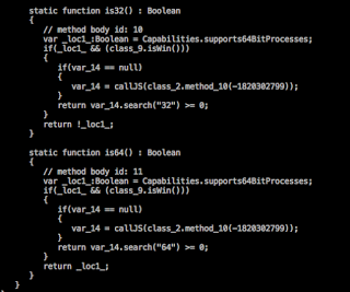 When the program execution starts, the ActionScript looks for the input parameters and based on it, sets a variable which is then sent to the main exploitation routine as seen below: