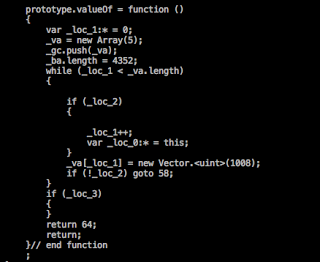 If the value of _ba[3] is set to zero after the assignment then it was successful in triggering a Use After Free vulnerability. The exploit code looks for the kernel32.VirtualProtect() (VP) function in the corrupted vector space as seen below: