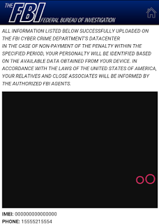 Once the user clicks on the "ACTIVATE" button, the malware gets administrator control of the device and locks it while displaying a fake FBI warning as seen below. It locks the user's phone by disabling keyguard and sets top priority for the malware application which ensures that no other application or user activity can override the malware application's activity.