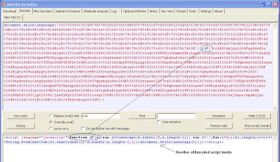 The above screenshot shows obfuscated JavaScript is present in the webpage after the closing html “” tag (prior to the actual page body). Malzilla a user friendly GUI tool was used to decode the obfuscated JavaScript. You can find good documentation on their website.
