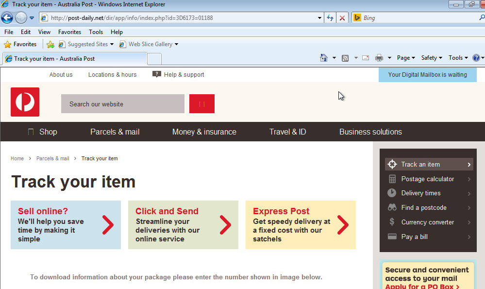 We recently encountered a ransomware campaign leveraging phishing e-mails purporting to be from the Australian Postal Services. The spam campaign themes used by the attackers involve tracking services or mobile invoices containing a link to the malicious content.  Upon completion of a CAPTCHA, the user is provided a zip file which contains a malicious executable posing as a PDF document.