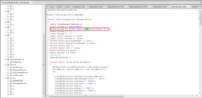 From above screenshots, you can see that the application is using the XML listener service. Also, in the second screenshot, you can see that the application is trying to create a URL by assembling various strings. This is likely command and control (C&C) communication sent to a master server. The parameter &imei denotes the harvesting of the phone's IMEI number for tracking the device.