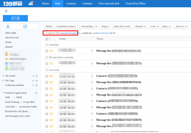 The following screenshots shows the list of emails received by the attacker: