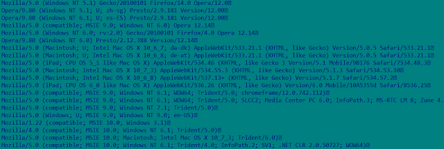 It uses hard coded User-Agents from the following list when communicating with the remote host: