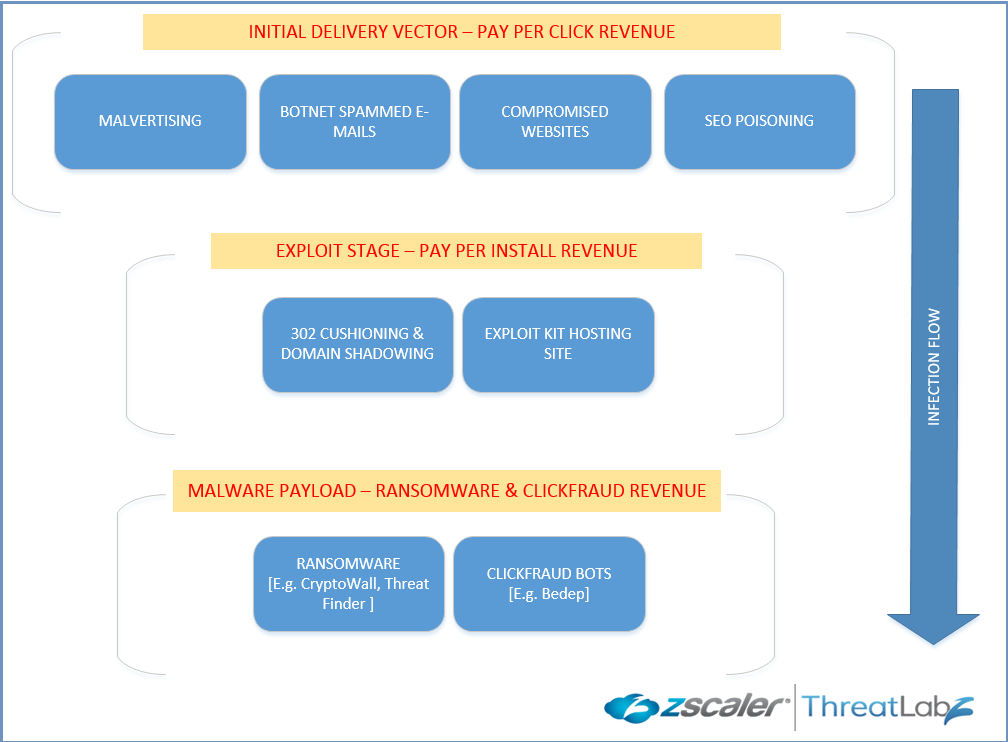 Threat actors involved at different stages of the infection cycles are part of a thriving Cybercrime infrastructure & business model that is all interconnected as seen below: