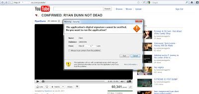 Attackers often create fake YouTube pages in an effort to lure a victim into downloading malicious binaries. During our research, we recently found an example of such a site. When a victim visits the page, a security warning will pop up saying “The application’s digital signature cannot be verified. Do you want to run the application?”. Should a victim accept the prompts, they will download and run a malicious binary on their system. Here is a screenshot of the page: