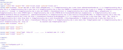 The webpage includes a Java applet that runs a “YouTube.jar” file, which will then download “ser.exe” from the server. If you visit the homepage of above site, you will also see a separate Java applet being combined with VBScript to download and run the same malicious binary with a slightly different name “serv.exe”, which will later saved as “update.exe”. Here is screenshot of that script: