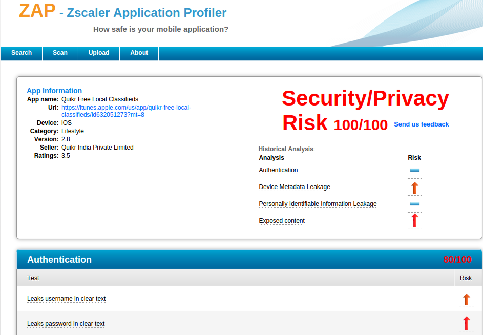 This flaw was identified using the Zscaler Application Profiler (ZAP). ZAP is a free online tool that can be used to analyze mobile applications for vulnerabilities and privacy issues as seen in the above screenshots.