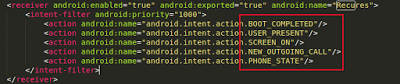 Broadcast Receiver acting on particular events