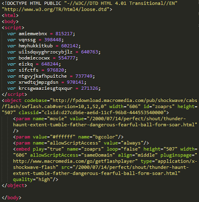 Fig 10. Script data inside embedded SWF - characteristic of Neutrino