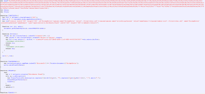 The flash exploit is not as well hidden as the Java exploit, and it is found on fewer links. It consists of a single page with obfuscated Javascript.