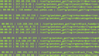 The Yahoo brute-force attempts primarily appear as HTTP GET requests taking a variety of forms: