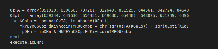 In another type of obfuscation, two arrays of values are provided, and the decrypted script is built character by character with arithmetic operations on array elements.