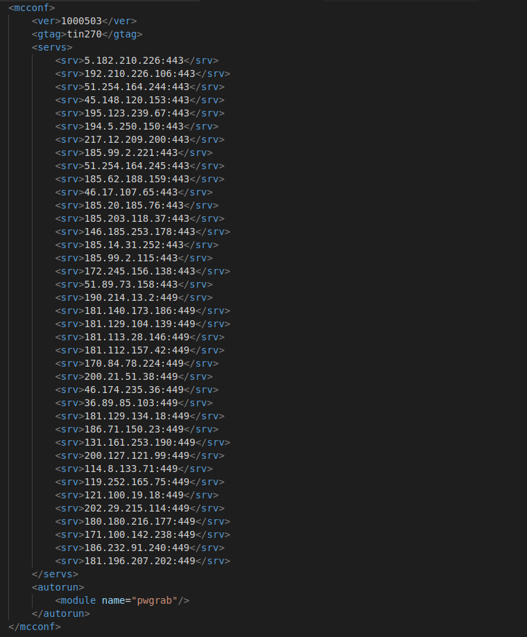 Unlike Emotet, which uses a separate first layer C&C infrastructure for different epochs, we observed no such organization in TrickBot. It shares its first layer infrastructure between all levels, global site tags (gtags), and versions.