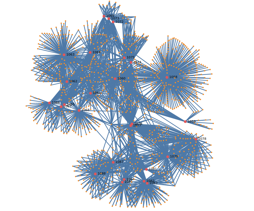 It may seem that each version represents two botnets that are run independently, but according to our data, the C&C infrastructure is shared by all versions. More than 1,400 C&C IPs extracted from the TrickBot configuration were used to draw a relationship map with loader versions.
