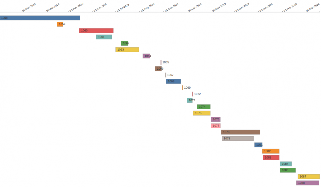 We looked at loader version numbers and their compilation dates, then plotted version 1058 to version 1088 with their corresponding compilation dates. It seems that two different versions are maintained at a time: