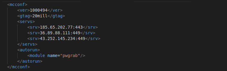 Image 19: Configuration file extracted from MD5: 598bc23fc38b4712289ff5488bce2f1c containing "20mill" gtag